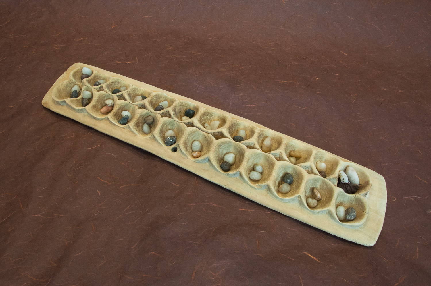 Bi ilarako mankala, 2×12. Bina harri-koskor zuloetan, guztira 48 harri-koskor.
