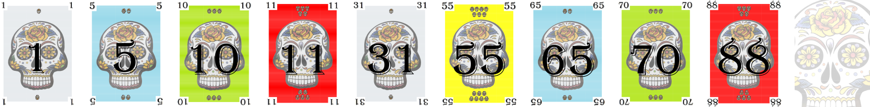 Jokoa 104 kartako karta-sorta bat da, 1etik 104ra zenbakituak. Karta bakoitzak burezurrek adierazten duten balioa du: