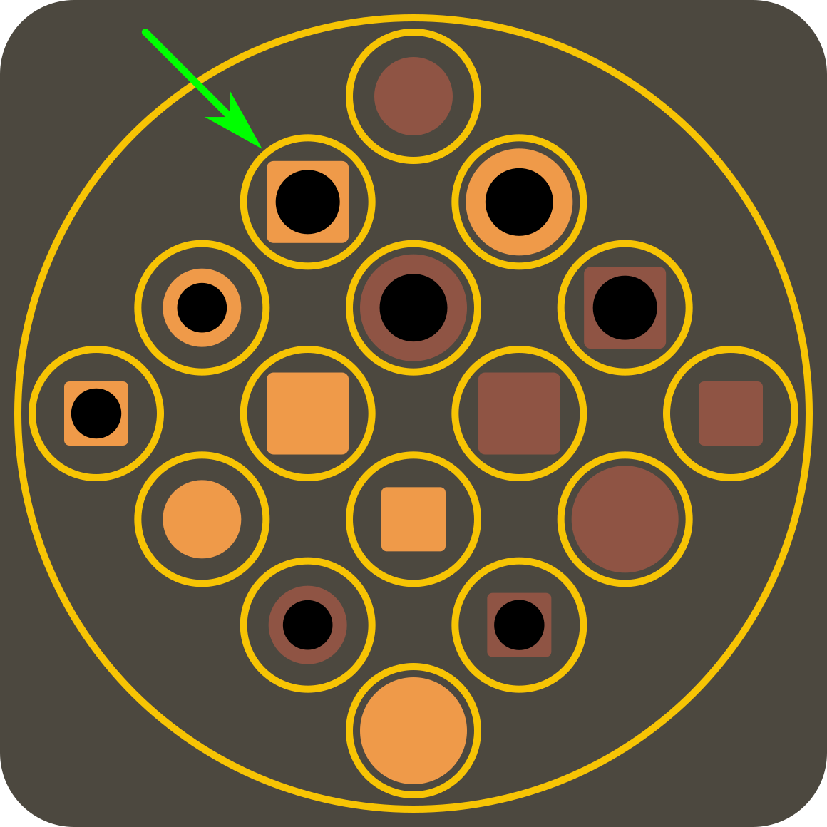 Lerrokaduraz gain, beste aukera bat eman dakieke jokalariei jokaldia irabazteko: ondoz ondoko lau zirkuluk osatzen duten laukian (2×2) ezaugarri komuna duten lau pieza kokatzea, hain zuzen. Horrela, aurreko 10 lerroei 9 karratu gehitzen zaizkie.