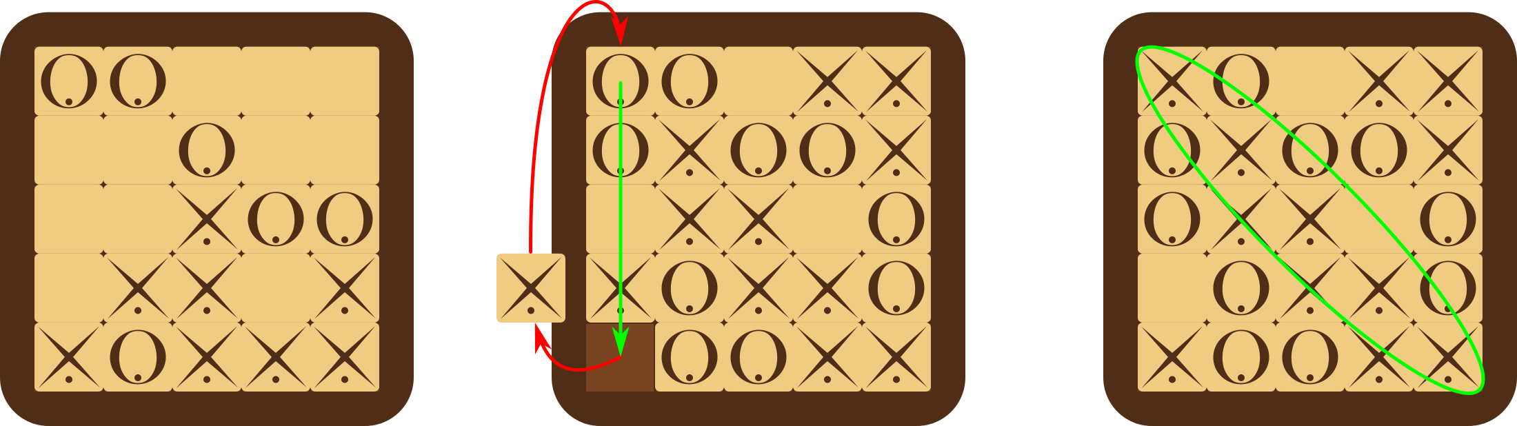 | Partida baten garapena. Eskuinean, bost gurutzeko lerroa osatu da. |