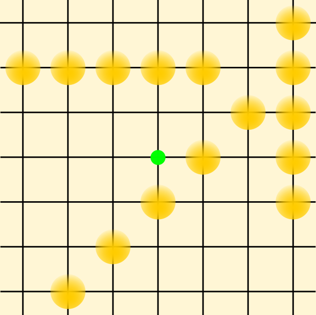 Kolore bereko harrien antolaketa, lerro diagonal, bertikal edo horizontal batean kokatua, taularen ertzek, harri aurkariek edo bidegurutze huts batek mugatzen dutena, eta harri propioen artean harri aurkaririk ez duena (baina, bidegurutze hutsik agian bai).