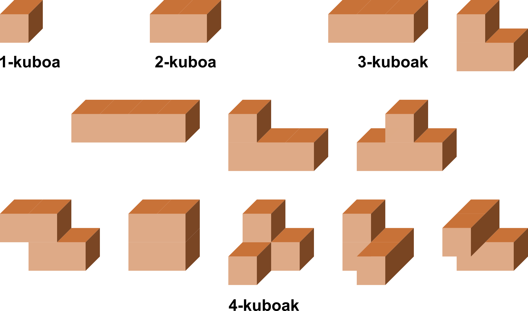 Pieza irregularrak osatzen zituzten lau kubo arteko polikuboei buruz ari zen.