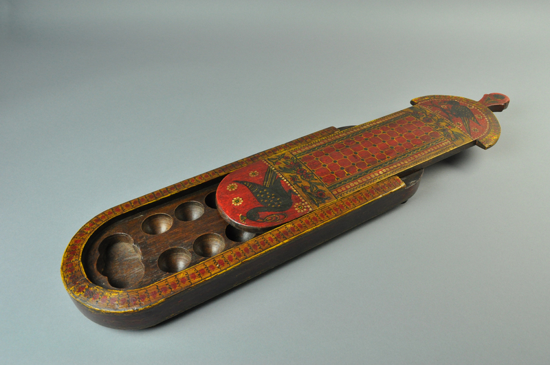 | Tablan joko-kutxa, pallankhuzi barruan eta bederatziko errota azpian dituela, XX. mendea. Kochi, Kerala, India. Penn Museum, Filadelfia, AEB. |