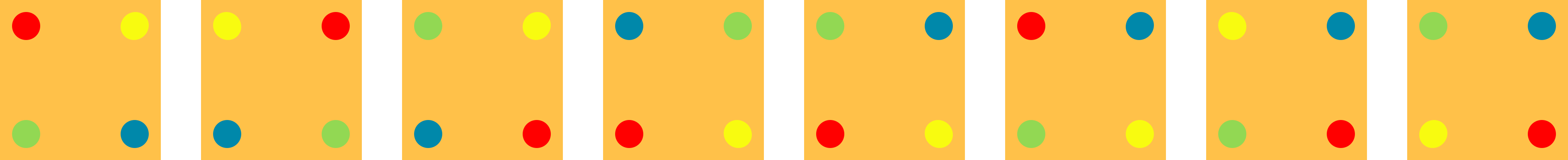 Zortzi karratu daude eta bakoitzak lau puntu ditu lau kolore desberdinetan.