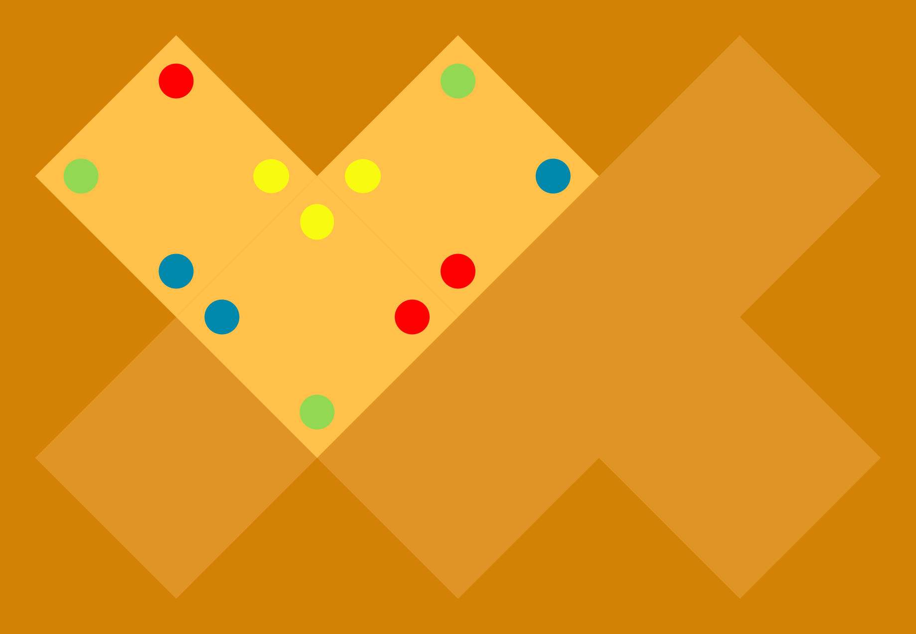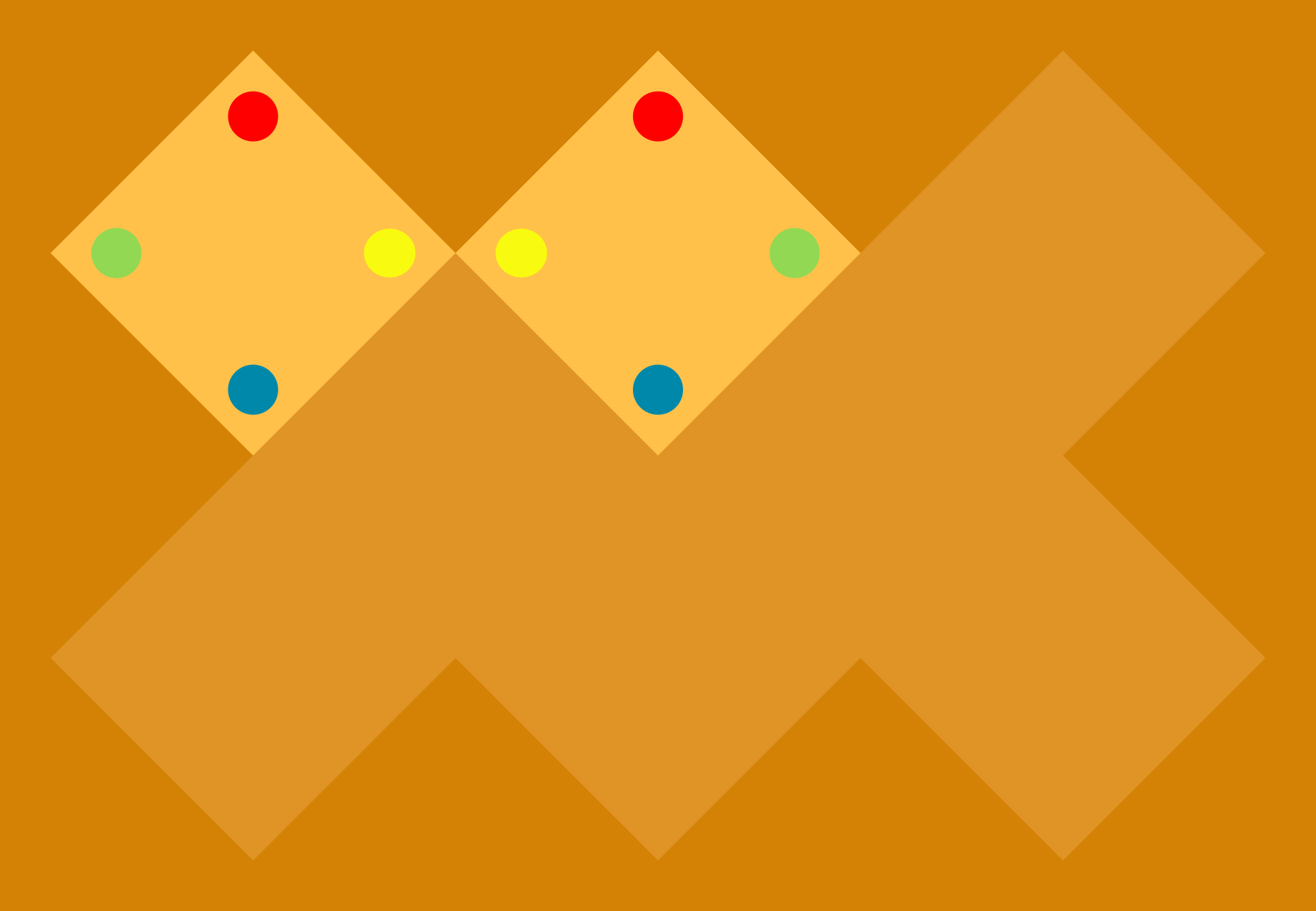 Karratuak oinarritik atera daitezke eta nahi erara sartu. Baldintza bakarra bi karratu elkartzen direnean, puntuek kolore bera izatea da.