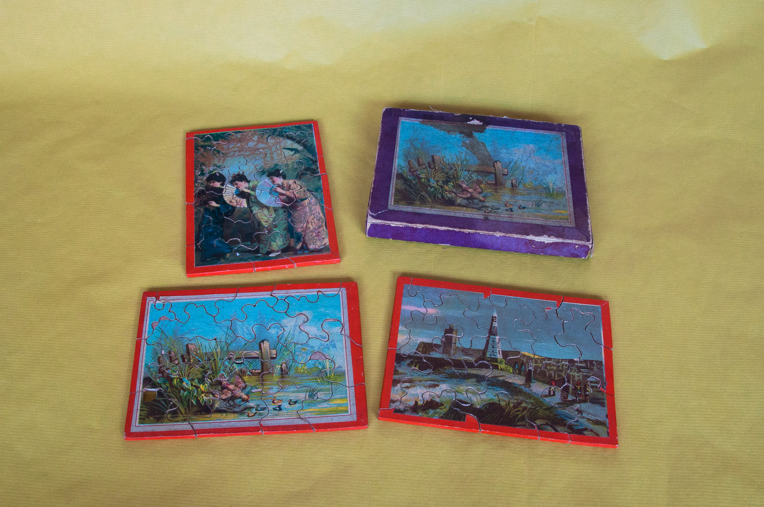 Hiru geisha (18 pieza), ahateak istilean (18 pieza) eta itsasargia (17 pieza). Kutxa.